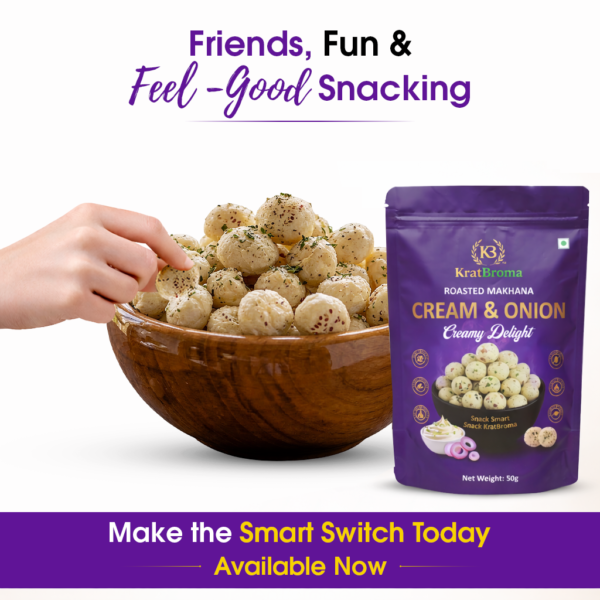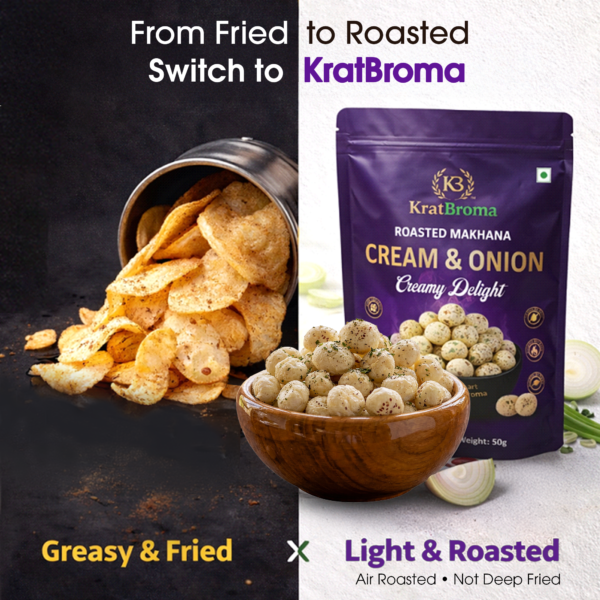 KratBroma Cream & Onion Roasted Makhana – 50g