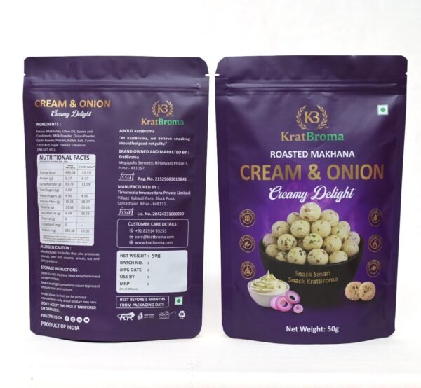 KratBroma Cream & Onion Roasted Makhana – 50g